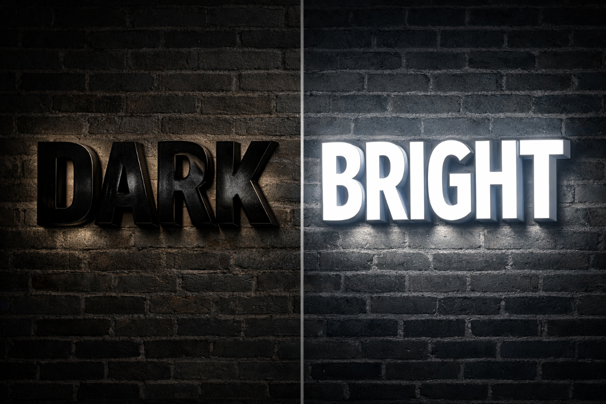 Почему тёмные световые буквы светят хуже и выглядят «грязно» — простое объяснение на практике