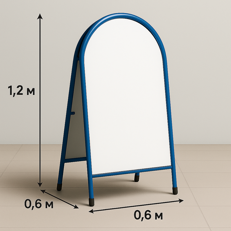 Арочный штендер стандарт 1,2×0,6 м — универсальная конструкция для размещения рекламы возле магазинов, кафе, офисов и салонов. Прочная металлическая рама и арочная форма придают изделию современный внешний вид и улучшенную устойчивость.