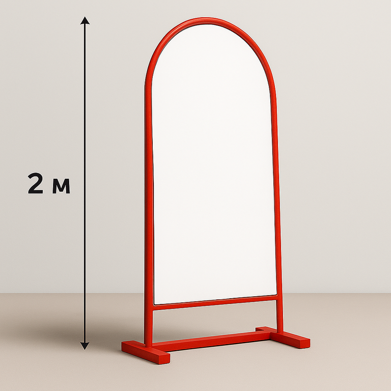 Арочный рекламный штендер высотой 2 м — это надёжная напольная конструкция для размещения наружной рекламы у входа в магазины, кафе, автосервисы и офисы. Каркас выполнен из прочной металлической трубы, а рекламное поле — из оцинкованной стали, устойчивой к влаге и перепадам температур. Печать изображения выполняется с разрешением 720 dpi, что обеспечивает яркость и чёткую детализацию. Габариты изделия — 80×200 см, размер рекламного поля — 74×171 см.